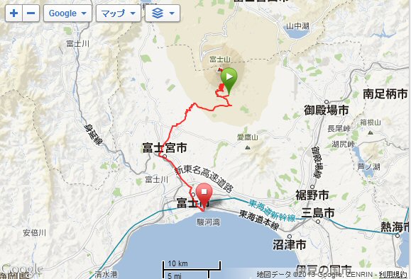 予定では、12時前に到着している予定だったが、かなり落ちてしまった。浅間神社で登頂のお礼のお参りをして、残り15kmと肝に銘じて走り出そうとするが、走れない・・・とりあえず早歩きで進む事に。